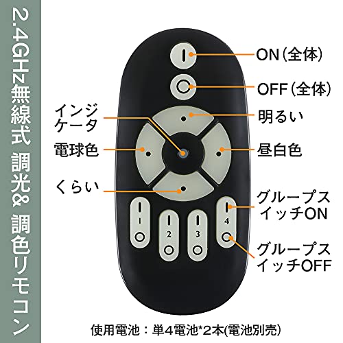 【便利なリモコン操作】2.4GHz無線式リモコンでペアリング・調光・調色・スイッチon/offなどすべての調節が可能です。グループ毎に制御できます。(電池別売)