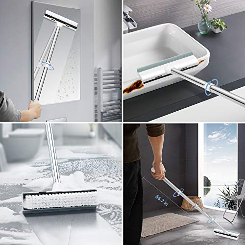 MEIBEIフロアスクラブブラシ スクイジー二合一設計 掃除用ブラシ水切りワイパー デッキブラシロングハンドル