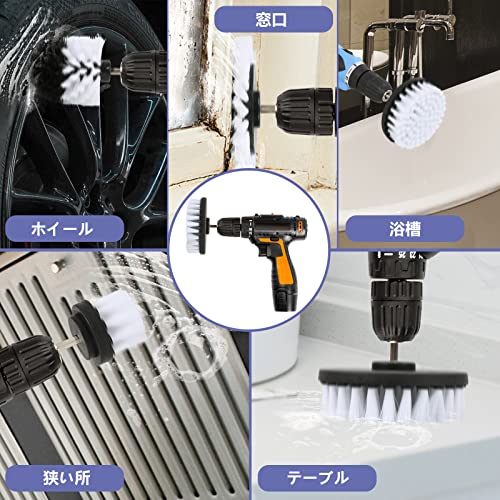 電動ドリル ブラシ 4 点セット 電動掃除用ブラシ 六角軸電動ドリルに適応 風呂 台所 浴室 トイレ 車の掃除に