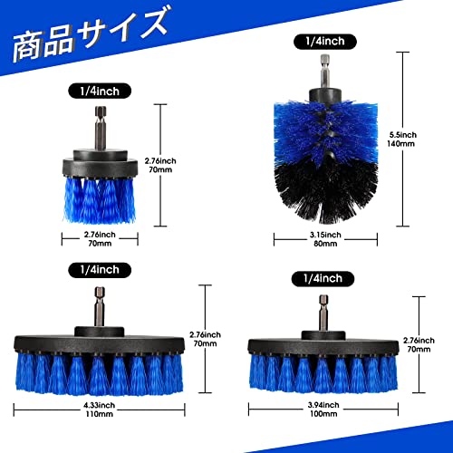 電動ドリル ブラシ 4点セット 電動掃除用ブラシ 六角軸電動ドリルに適応 風呂 台所 浴室 トイレ 車の掃除に活