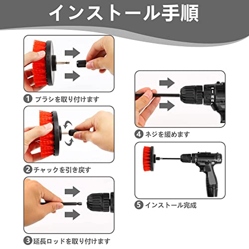 | 商品名 | 電動ドリ ルブラシ 5点セット 電動掃除用ブラシ エクステンションバー付き 六角軸電動ドリルに適応 風呂 台 |