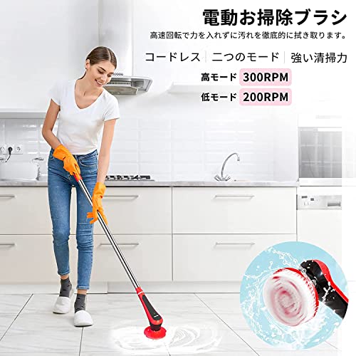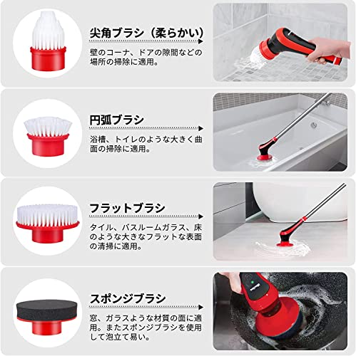 電動お掃除ブラシ バスポリッシャー お風呂掃除 電動ブラシ ターボプロ 浴室電動ブラシ 3段階長さ調節 防水