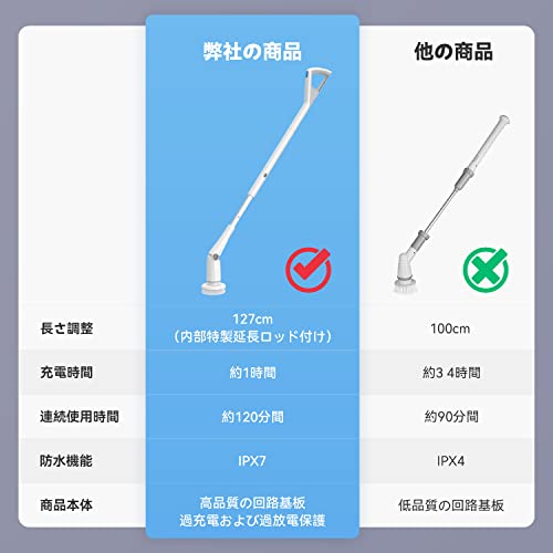 【大容量電池】この電動掃除ブラシは2000mAH×2の大容量バッテリーを内蔵、一回のフル充電は1時間で、120分までの連続作動できます(満電の場合).普通の家では、1回の充電で家全体の汚れをきれいにでき、明るく清潔になります。汚れを簡単に取り除き掃除時間も短縮し時間を節約できます.