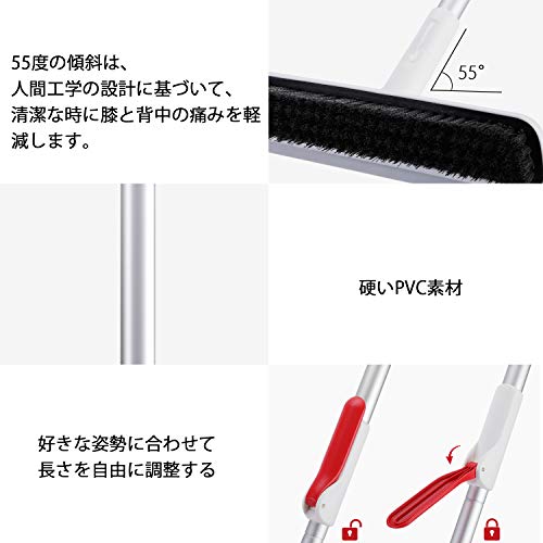 【いいデザイン】55度の傾きで、腰に負担が掛からず、掃除しながら膝と背中の痛みを軽減します。 組立のタイプ・ハンドルのは吊り下げ式のデザイン:収納簡単、使わない時に壁にかけると邪魔にならなくて収納性が高い。 アルミポール:1.伸縮可能 2.鉄ポールよりも軽いです 3.鉄ポールのように錆が発生しない。