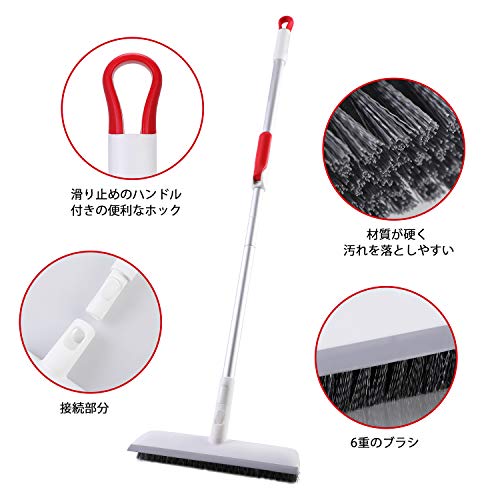 Clean home デッキブラシ 浴室掃除用ブラシ タイルブラシ 掃除用品 風呂掃除 伸縮可能 ポール防錆デザイン ベラ