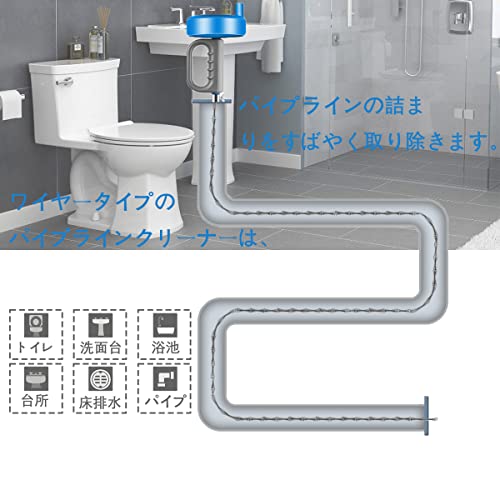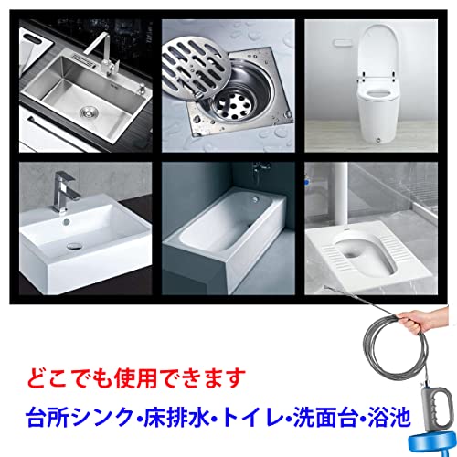 [高いデザイン性]使用の後、ワイヤーは本体に収納ができます。5メートルでも10メートルのワイヤーでも可能です。回転ハンドルを使用すれば、Sトラップ・Pトラップどちらの曲がった排水溝にも使用ができるので、トイレや洗面所、台所のシンク、床排水用や他のパイプにもお使いいただけます。