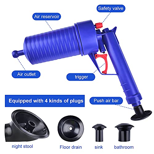 【使いやすさ】プッシュロッドでエアシリンダーを膨らませ、引き金を引くだけ。 詰まりを取り除くまで数回繰り返します。 安全で便利