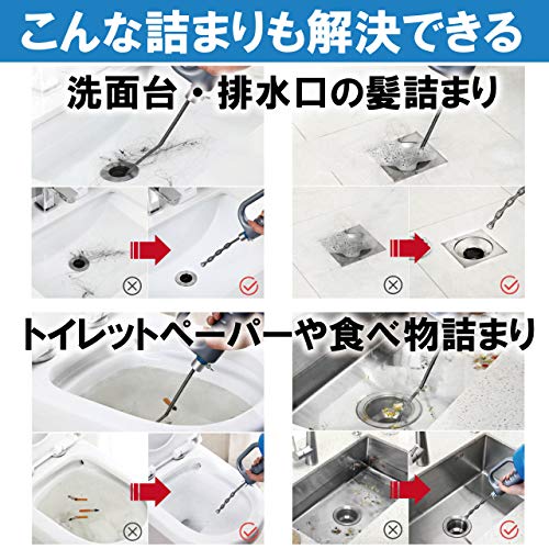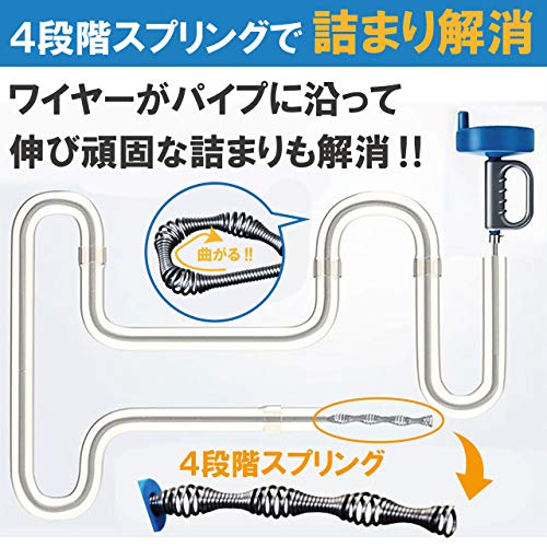 ワイヤー式のクリーナーで使用後もコンパクトに収納ができます。キッチン、洗面所、お風呂、トイレ、配管、排水管や下水管などの配管やパイプの詰まりにお困りの方は必見です。