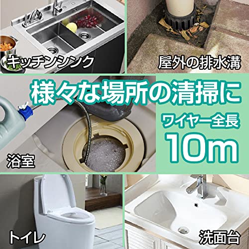 パイプクリーナー 詰まり取りセット ブラシ ワイヤー 10M 回転式 洗面所 排水口 つまり解消 手袋付き