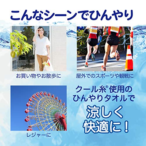 【 濡らして ひんやり 】 接触冷感度 が綿の2倍以上あるクール糸を織り込んで作ったタオル。もちろんそのままでもひんやりと感じますが、水に濡らして使うとさらに約2.5倍ひんやりと冷たく感じます。
