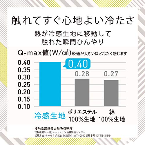 ストライプ柄の生地は、冷たさの尺度を示すQ-max値0.4の冷感機能をもつ生地です。触れた瞬間、熱が生地へ移動するため、冷たさを感じられます。