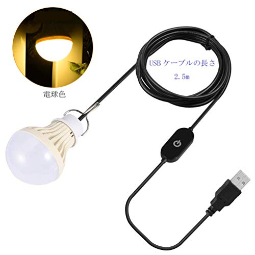 LEDGLE 5W USB LED電球 ポータブル LEDライト USBライト 電球形 USB給電 USB端子 無段階調光 タッチスイッチ キャンプ