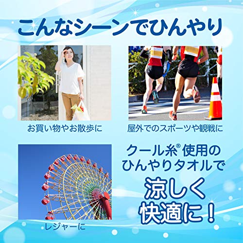 【 クールタオル 】 サイズ:約16×90cm 枚数:2枚 重量:73g 素材:クール糸( ポリエチレン、綿 ) Eco de クール エコでクール クール糸で織り込んだ冷感タオル。 エアコンや扇風機の補助 エコな熱中対策に。