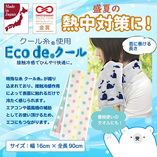 【 クールタオル 】 サイズ:約16×90cm 枚数:同色2枚 重量:73g×2 素材:クール糸( ポリエチレン、綿 ) Eco de クール エコでクール クール糸で織り込んだ冷感タオル。 エアコンや扇風機の補助 エコな熱中対策に。