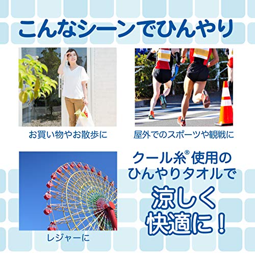 【 クールタオル 】 サイズ:約8×90cm 素材:クール糸( ポリエチレン、綿 ) クール糸で織り込んだ冷感タオル。 エアコンや扇風機の補助 エコな熱中対策。 Eco de クール エコでクール