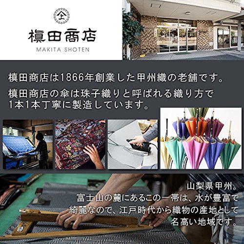 市場で販売されている傘の多くが生地にプリントするものが多い中で、槙田商店の傘は珠子織りと呼ばれる織り方で1本1本丁寧に製造しています。傘生地を見る角度や照明によって、豊かな表情を持っているように見えます。