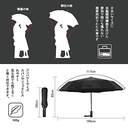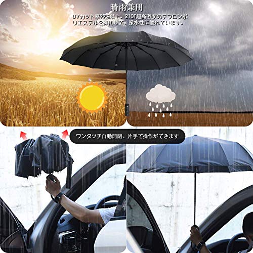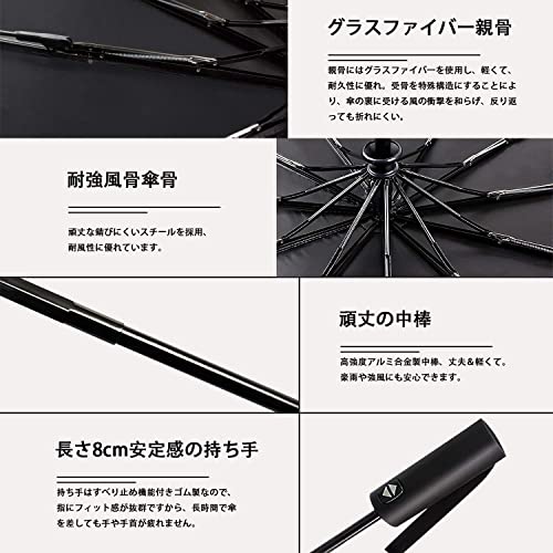 ?【高強度12本骨折りたたみ傘】頑丈な12本骨の設計で、豪雨、強風にも対応できます。強風で裏返ってもちゃんと元に戻ります。アルミニウム合金製中棒とガラス繊維&スチール製の傘骨を採用するので、錆びなくて、普通の傘より風に強い設計で、安易に折れたり曲がったりする心配ありません。