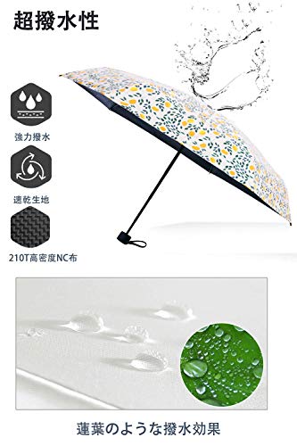 【超撥水性&晴雨兼用】210T高密度の撥水加工材料で作られ、雨が珠のように丸くなり転がり落ちます。普通の傘より撥水性が優れ、軽く振るだけで雨水を振り払えます。長い間使用しても雨の