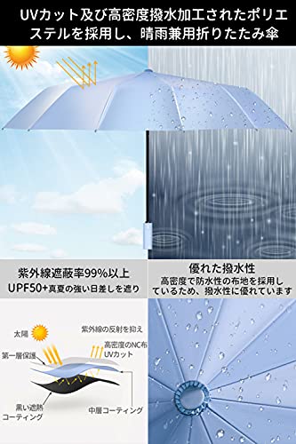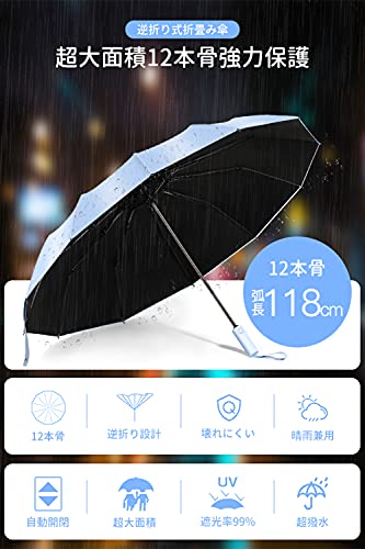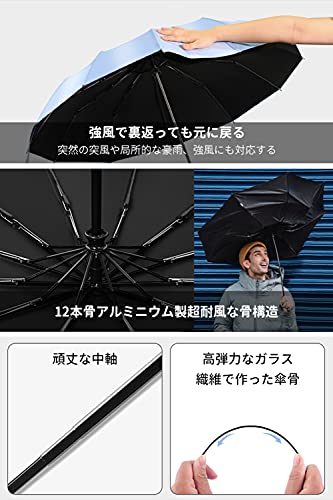 【強耐風12本骨折りたたみ傘】12本の頑丈なアルミニウム合金製親骨製を採用し,普通の折りたたみ傘より風に強い設計で、強風を受けて万が一逆さに反しても元に戻ります。安易に折れたり曲がったりする心配ありません。豪雨、強風にも安心できます。