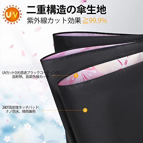 【UVカット100%&完全遮光折りたたみ傘】:UVカットブラックコーティング,高断熱・高紫外線カット。UV遮断