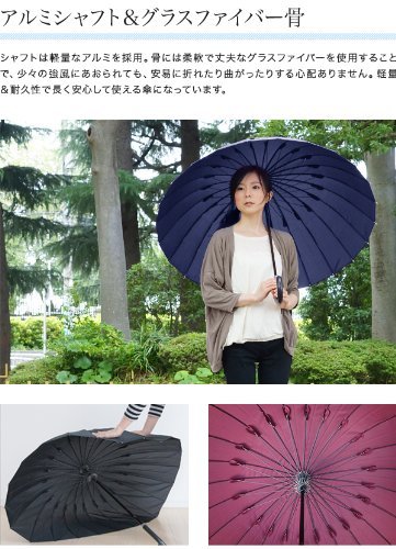 Ombrage 長傘 雨傘 24本骨傘 高強度グラスファイバー テフロン加工 水をはじく 超撥水 強風でも折れにくい 梅雨