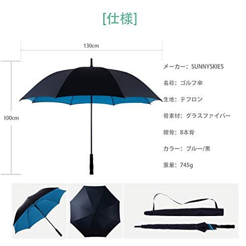 | 商品名 | 傘 長傘 メンズ レディース ワンタッチ ゴルフ傘 ? sunnyskies 2重PG布 テフロン超撥水 210T高強度グラスファイバ |