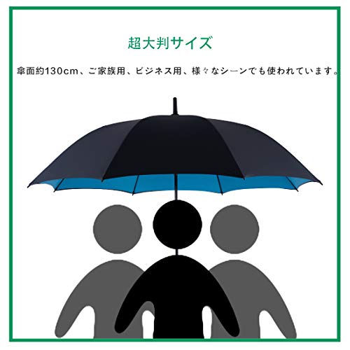 ブラックフライデーセール開催中、ご注文はお早めに!【超大判サイズ】通常の傘が90~110cm程度ですので、約二回りは大きいデザインです。通常の傘より重いですが、安定感がよく大きさの割には重量感は感じにくい大きな長傘です。リュックやバッグを持っていても荷物を濡らしにくく、ご家族用、ビジネス用、車椅子の介助等、様々なシーンでも使われています。