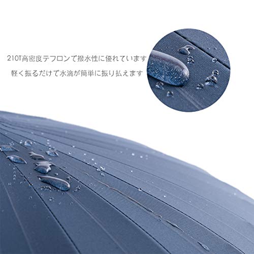 【超撥水性】210T超高密度のテフロンポリエステル材料で作られ、普通のテリレン製傘より撥水性に優れています。豪雨の中でも、体が濡れることはありません。長い間使用しても雨の染み込みが気にならなくなりました。傘を閉じた後、軽く振るだけで水滴が簡単に振り払えます。電車内等の公共の場では人にご迷惑を掛けません。