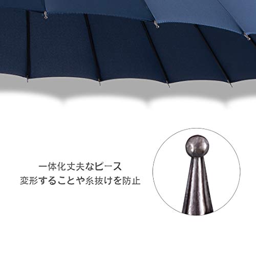【頑丈な24本骨】24本骨は柔軟で丈夫なグラスファイバーを採用し、24本骨にすることで今までにない強度と耐久性を実現します。少々の強風にあおられても、安易に折れたり曲がったりする心配ありません。耐久性で長く安心して使える傘になっています。