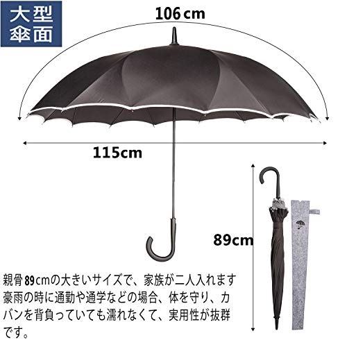| 商品名 | 瑾秀 長傘 メンズ 大きい ワンタッチ 16本骨 傘 XL 耐風 撥水 ワンタッチ 雨傘 紳士傘 車用 長傘 自動開け ステ |