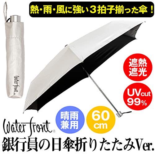 銀行員の日傘折りたたみVer.(親骨60cm ZIP 日本テレビ 日傘男子 男女兼用 晴雨兼用傘 熱中症対策 waterfront 99%紫外