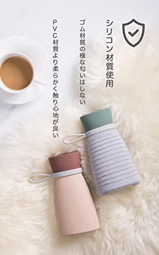 FRIENDLY JENNY 湯たんぽ レンジ お湯 両方対応 小型 680ml シリコン材質 やわらか カバー付き (淡緑)