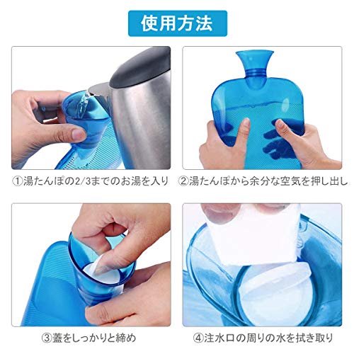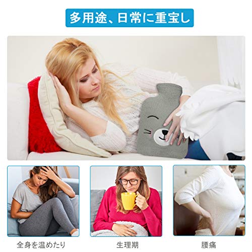LATTCURE 湯たんぽ お湯入れ式 1000ML 水漏れ防止 PVC ふわふわのカバー 冬 就寝 デスクまわり 冷え対策 電気不要