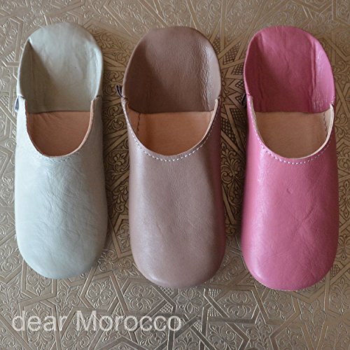 ディアモロッコのバブーシュには、出来る限り上質の革を使用しているため、モロッコのバブーシュの中ではかなり匂いが少ない方ですが、その匂いも、お使いいただくうちに無くなります。