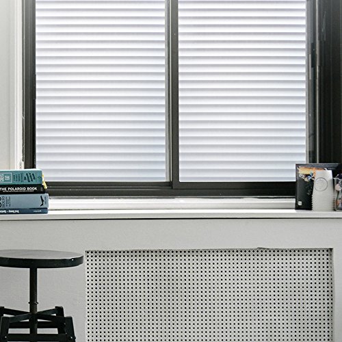 【目隠し、プライバシー保護】⇒ 外からの視線を遮りながら、かつ、充分に外の光を室内に取り込めます。カーテンを閉めているときの閉塞感や窮屈感あるの暗い部屋から解放されるでしょう。調光にも適しています。ブラインド柄で落ち着いた感じです。