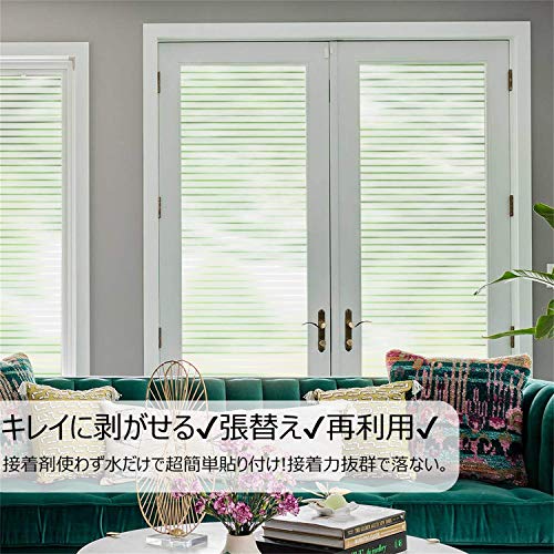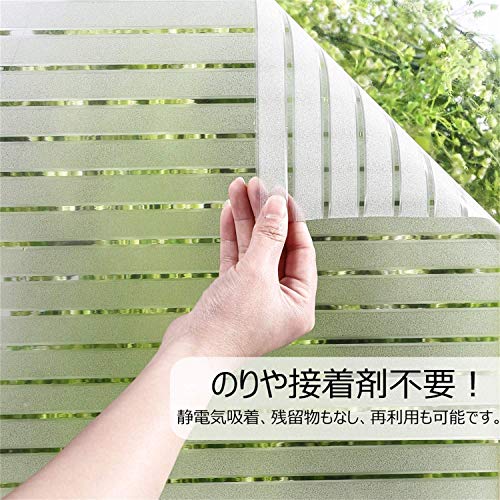Rabbitgoo 目隠しシート 窓用フィルム ストライプ 窓 めかくしシート 水で貼れるガラスフィルム 跡なくはがせる
