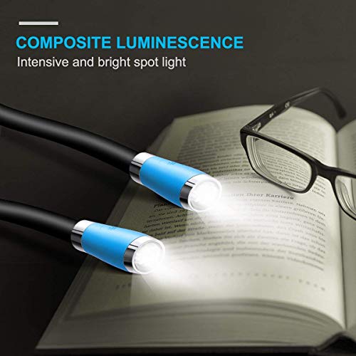 TSINGREE LEDネックブックライトUSB充電式、ハンズフリー、4つの超高輝度LED電球、3つの調整可能な明るさ、ベッ
