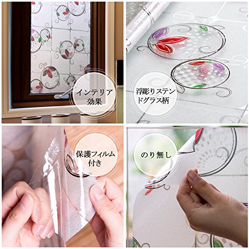 CottonColors 窓用フィルム 目隠しシート 何度も貼直せる ガラスフィルム 紫外線カット 遮熱 90x200cm ステンドグラ