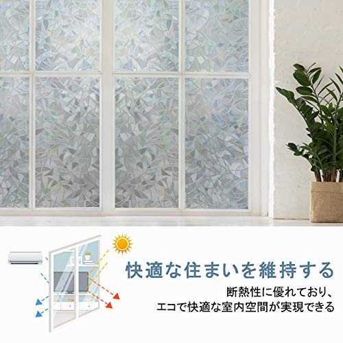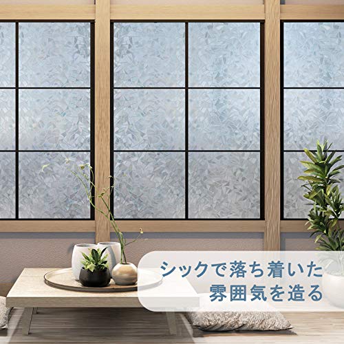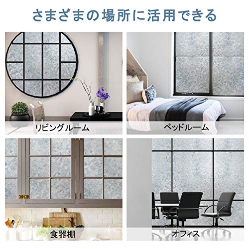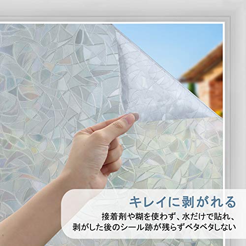 貼り付け簡単・貼り直し可能:接着剤を使わなくて、静電吸着タイプなので、水だけで迅速で貼れる。または貼り付け&取り外しが簡単に行えること。何度でも貼り直しでき、老若男女誰でも安心に使える窓フィルム。賃貸お住まいの方も嬉しい!