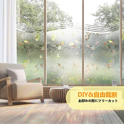 Homein 窓ガラス目隠しシート 窓用フィルム 水で貼る 跡残らず剥がせる uvカット ステンドグラスシール おしゃ