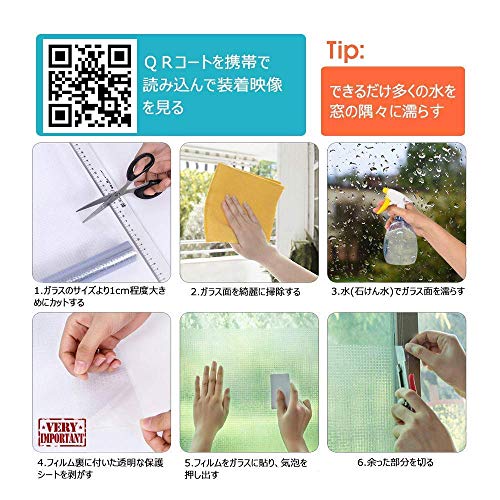 【水で貼る、跡残らず剥がせる】静電気吸着で、水だけで貼っても粘着力がとても良いです。何度でも貼り直しok!無接着剤タイプだから、剥がした時は跡残りません。賃貸部屋でも楽に使えます。