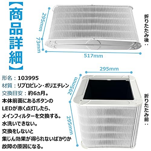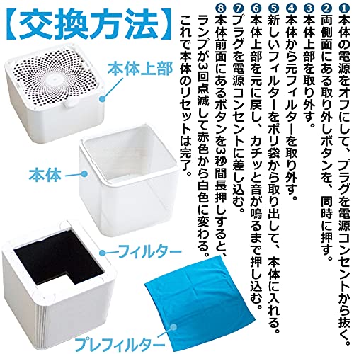 【交換の目安】約6ヵ月。日常的なお手入れは不要。水洗いできない。定期的に交換してください。交換をしないと集じん効果が得られないばかりか故障の原因にもなる。(使用環境によっては、数週間から数カ月でフィルターからニオイが発生し、フィルター交換が必要となる場合がある。)