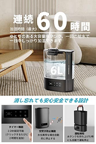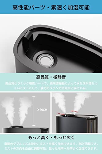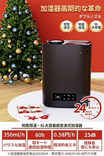 LERIZOM 加湿器 大容量 6L 卓上 2022年改良版 超音波加湿器 ダブルノズル 湿度調節可能 360度回転ノズル 60時間連続