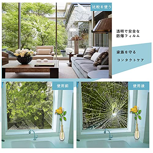 厚さ0.1mm 透明 防災 ガラスフィルム 窓 透明 飛散防止フィルム 窓ガラス 強飛散防止 防災フィルム UVカット 紫