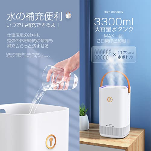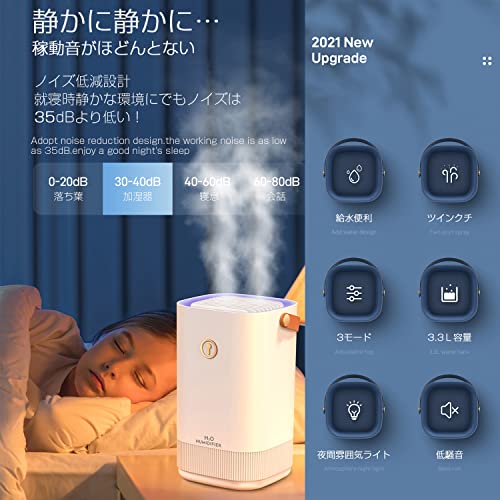 加湿器 卓上 大容量 3.3L ミスト 加湿機 3段階ミスト量調整 上から給水 家庭 寝室 静音 省エネ ナイトライト 塵