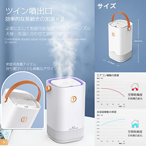 【極細ミスト】室内空気中に水ミストを噴射して空中の埃に湿気が付いていき。空気清浄、ツライ乾燥肌を潤す。乾燥が気になる季節の必需品。加湿器は熱を使わず、肌や喉、部屋を潤す、乾燥による肌荒れや喉の不具合などに対策になります。