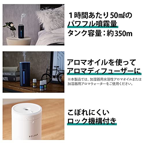 エレコム 加湿器 超音波式 抗菌 アロマディフューザー エクリアミスト USB給電 容量350ml 最大4時間 自動電源OFF