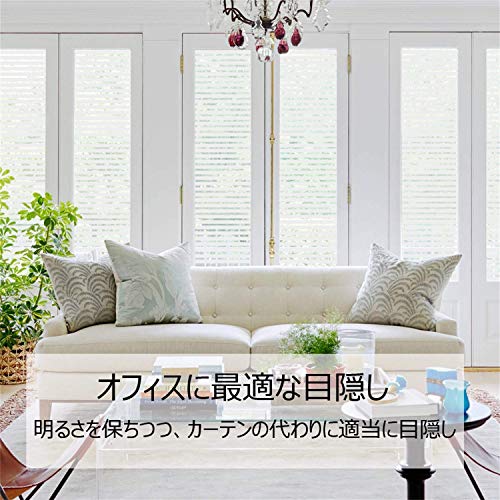 Rabbitgoo 目隠しシート 窓フィルム ストライプ 窓 めかくしシート 水で貼れるガラスフィルム 跡なくはがせる
