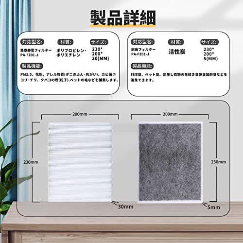 【交換品】空気清浄機用フィルターPA-FZ01-Jと互換性のある集じん・ 脱臭一体型フィルター です