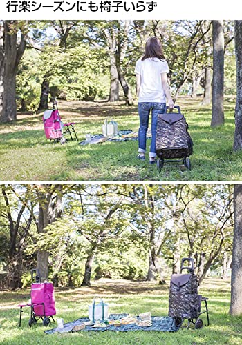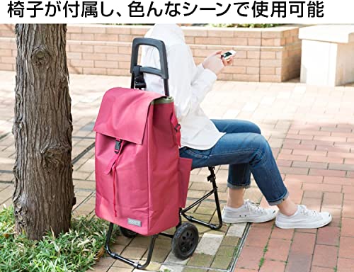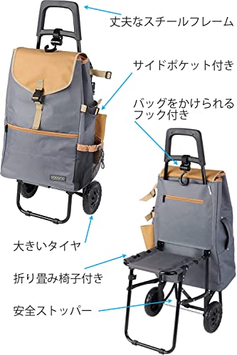 【スチールフレームで軽くて丈夫なショッピングカート】 耐荷重22kgで重い飲料やお米のお買い物にも安心です。クッション入りの折り畳みイス付きでいつでもどこでも気軽に一休みできます。カートはタイヤを外して折り畳んでコンパクトにすることができます。バッグをかけられるフック付き。雨の日に便利な傘ホルダー付き。A4縦サイズのポケット付き。